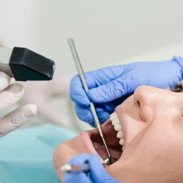 An intraoral camera is a slim, pen-sized device that takes high-resolution photos and videos inside your mouth. It allows us to examine hard-to-see areas clearly by displaying the images on a nearby screen.